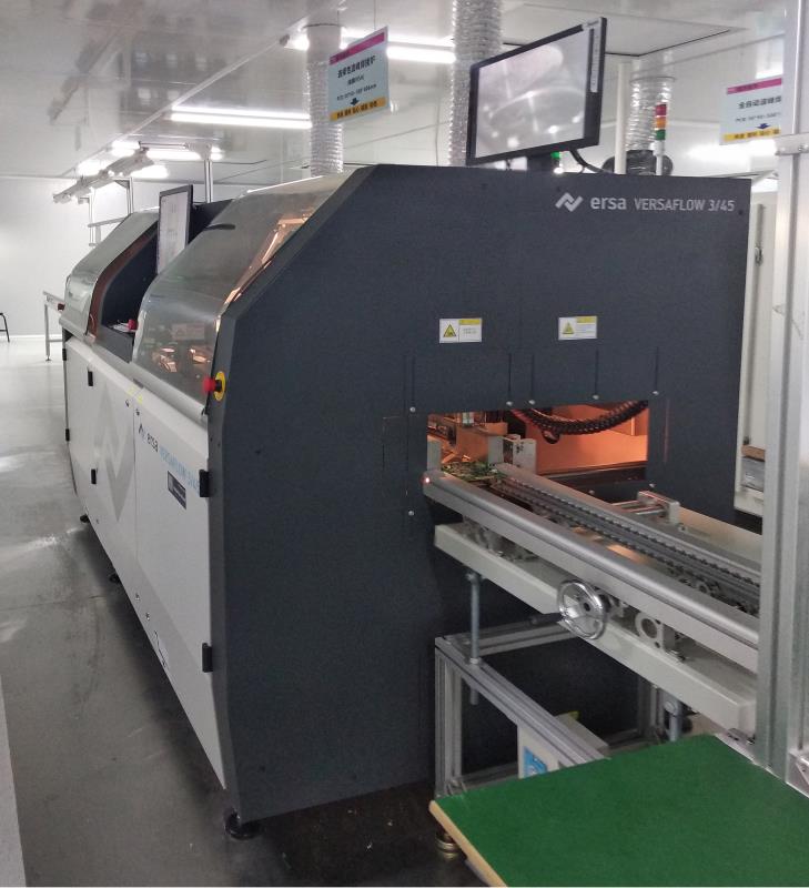 小銘打樣選擇性波峰焊正式投入使用----中國首家引進德國ERSA,助力高端產品焊接可靠性PCBA上插件器件的焊接,常規(guī)使用手工焊接或傳統(tǒng)自動波峰焊接,涉及避讓已貼片的SMT材料和部分不用上錫的過孔而需要專門訂制焊接治具,相應導致額外的治具成本、錫面增加致耗錫量增加、能耗高、污染嚴重等,尤其是制作治具需要必要的時間難以滿足小銘打樣之多品種小批量生產等問題,為了更好地履行時效+品質承諾,特別是滿足如汽車、航空、航天和軍工類高端產品的焊接需求,銘華航電于2018年7月引進了當今世界最先進的選擇性波峰焊--德國產