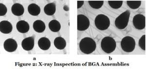另一個(gè)非常常見的問題是BGA連接的“爆米花”。 當(dāng)BGA的變形增加時(shí),它會導(dǎo)致某些焊球在焊接過程中合并在一起,從而導(dǎo)致組件的“爆裂”,如圖3所示。當(dāng)X射線檢測完成時(shí),這很容易找到。 這里需要注意的是,這種影響可能不容易通過光學(xué)檢查來檢查,因?yàn)檫B接的爆裂可能在包裝的中心并因此從側(cè)面看不見。 因此,X射線檢測為BGA裝配工藝增添了非常有價(jià)值的優(yōu)勢。