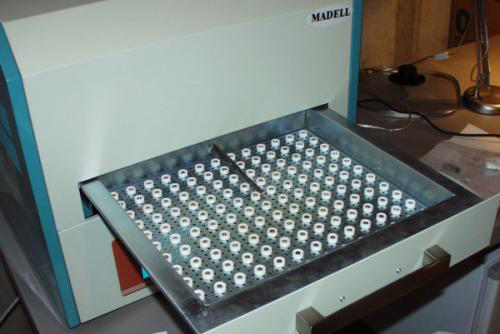 正如你所看到的,托盤非常大。 烤箱內(nèi)置風(fēng)扇用于冷卻。 元件是紅外線,加熱速度非???,可以非常接近地監(jiān)測溫度。 纖細(xì)的棕色是溫度傳感器,應(yīng)該貼在每個回流的PCB上 - 這是我們從未做過的事情。