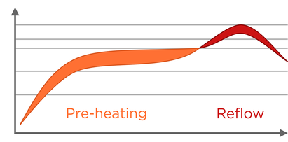 浸泡 - 此階段的目的是確保所有組件在進(jìn)入回流階段之前達(dá)到所需溫度。 取決于組件的“質(zhì)量差異”和組件類型,浸泡通常持續(xù)60到120秒。 浸泡階段傳熱效率越高,需要的時(shí)間就越少。