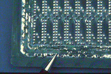 圖1顯示了焊接后從電路板表面抬起抗蝕劑的一個非常明顯的例子。 很簡單,這是由于不正確的印制板規(guī)格。 錫/鉛不應用于專業(yè)電路板上的抗蝕劑下。 當錫/鉛進入液相時,它會膨脹并可能導致焊料和抗蝕劑之間的粘附力喪失。 如果抗蝕劑脆或薄,它將如圖1所示分開。如果涂層的厚度小于3-5μm,則可以使用錫/鉛,因為在波峰焊或回流焊時會有非常小的移動。