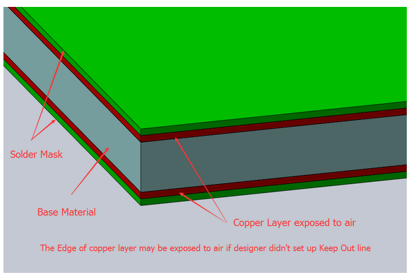 另一個問題是,如果設計師想把銅多邊形倒在電路板上,那么電路板邊緣的銅就會暴露在空氣中。 當電路板通過波峰焊過程時,這會增加短路的可能性。 熔化的焊料在通過焊料罐時會濺到電路板的邊緣。 焊料將粘在電路板的邊緣,并在頂層和底層銅層之間形成焊橋。